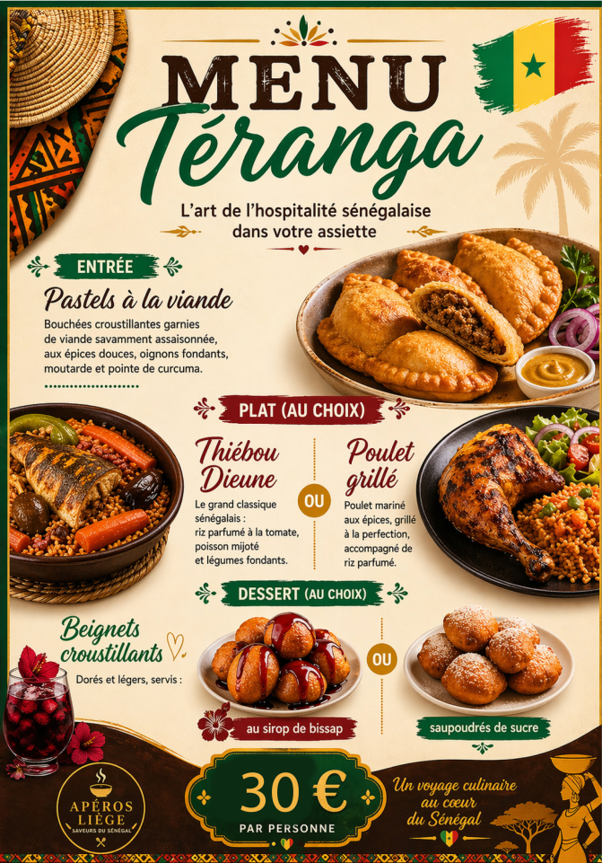 Le montant  de 30€ est à verser sur le compte de l’O.Pa.L. BE54 0015 3385 1397 avec la communication « repas sénégalais ».